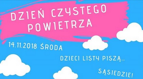 14 listopada obchodzimy Dzień Czystego Powietrza. Z tej okazji Województwo Małopolskie, a wraz nim nasza Gmina, zachęca wszystkie dzieci do napisania listu do sąsiada. Używając pozytywnych argumentów (np. dotyczących zdrowia i wygody), dzieci powinny przekonać sąsiadów do wymiany ogrzewania na ekologiczne, a tym samym do dbania o wspólne dobro, czyli czyste powietrze.