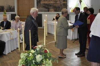 Pary, które obchodziły Złote Gody zostały odznaczone Medalami za Długoletnie Pożycie Małżeńskie nadawanymi przez prezydenta RP. Po toaście i zwyczajowym "100 lat" zespół "Brzezinianki" przedstawił okolicznościowy program dedykowany jubilatom.