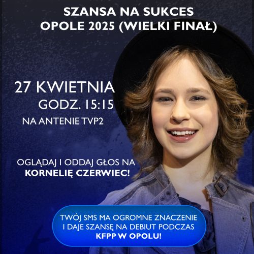 Z ogromną dumą informujemy, że Kornelia Czerwiec, zwyciężczyni pierwszej edycji Diamentów Kruszywa, wystąpi w wielkim finale Szansy na Sukces już w niedzielę, 27 kwietnia 2025 o godzinie 15:15 w TVP2!